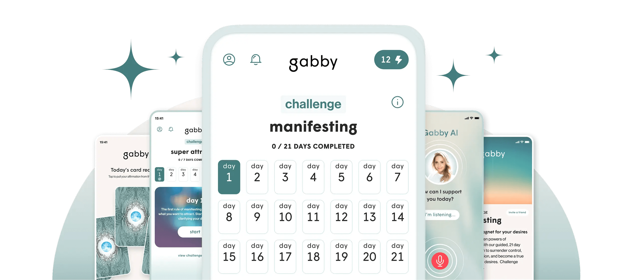 You’ll get instant access to 7 daily practices to amplify your manifesting power. You can start inside the gabby coaching app.